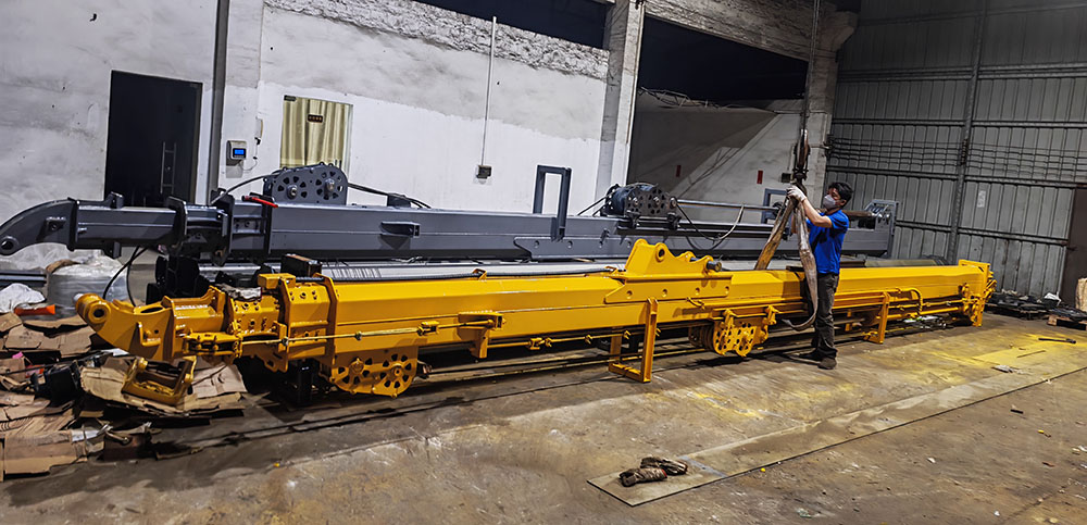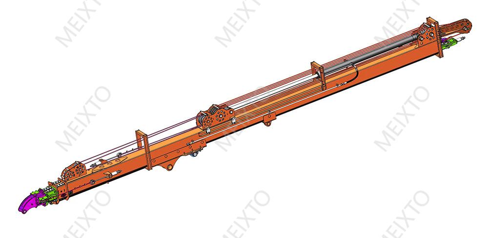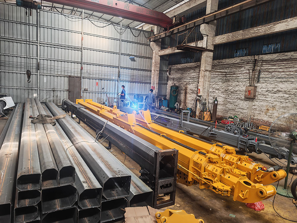 ✪ 2. Its structure consists of a single fixed body and one or more movable bodies. One section is the fixed body, and the remaining sections are the movable bodies. The movable bodies are nested within the fixed body in order of size, with two sections nested within one, and three sections nested within two. The telescopic cylinders enable sequential extension and retraction. Internal telescopic booms are complex and expensive to manufacture, typically designed with two or more sections. They are used for grabbing and lifting soil in deep pits. Their advantages include increased operating radius and excavation depth;
