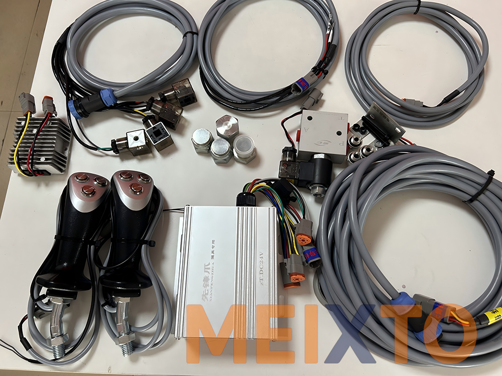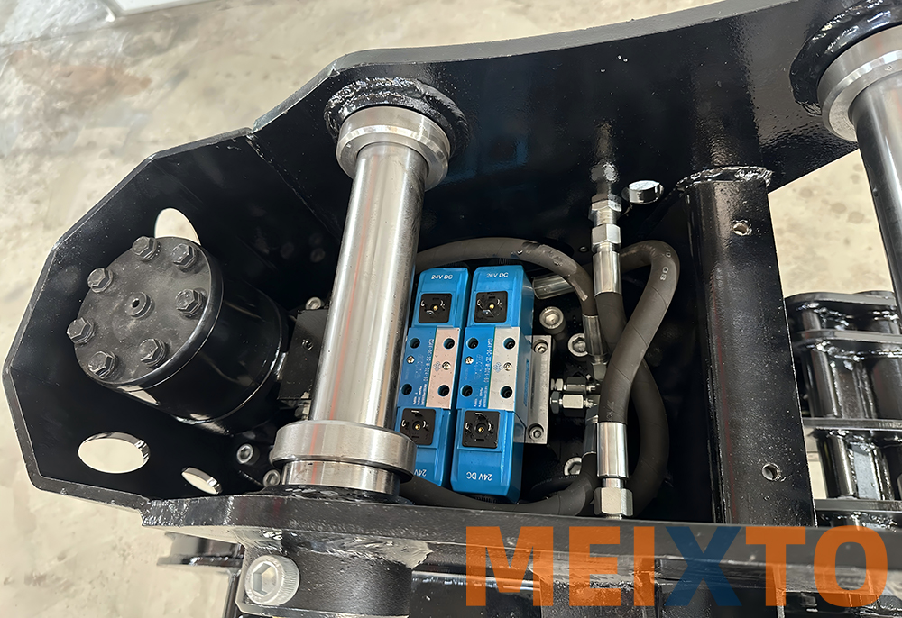 ✪1. The system design scheme for the excavator requires breaking the oil supply pipeline, which can cause high oil temperatures due to the small passage in the solenoid valve, thus imposing high requirements on the solenoid valve. The solenoid valve of the MEIXTO electric control grapple is equipped with a safety valve and features a nickel-plating rustproof treatment, with a pressure capacity of 32MPA, ensuring stable and reliable quality.