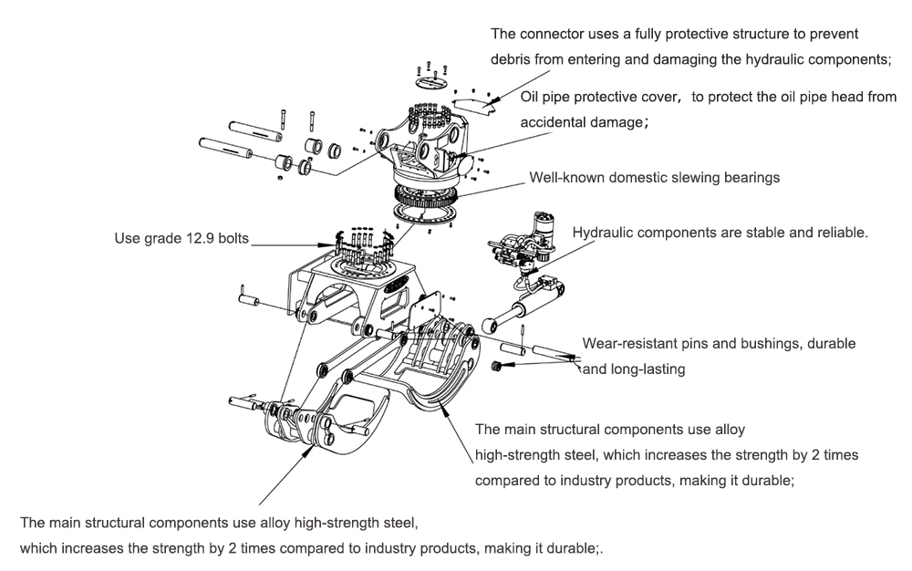 ● Rotary drive type: vertical straight tooth, hydraulic brake logging grapple